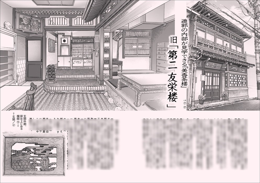 描写されている遊郭跡は京都 八幡遊郭を中心に、大阪飛田新地、飛田会館・性病検査場など。