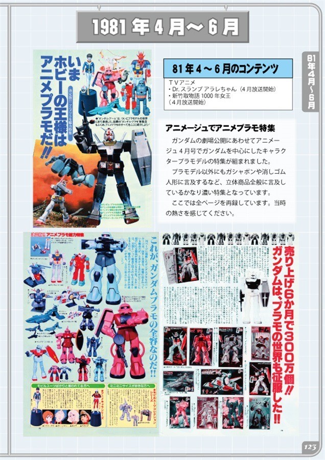 バンダイの模型情報を中心に1980年から1982年のガンダムプラモやアニメプラモのカタログ、広告、雑誌記事を集めて時系列順に掲載しております。
