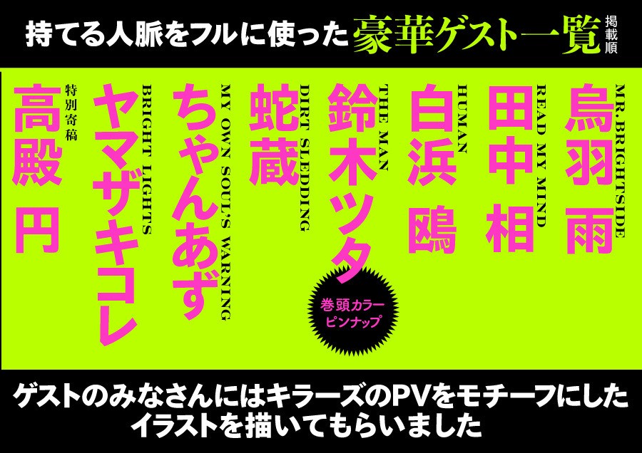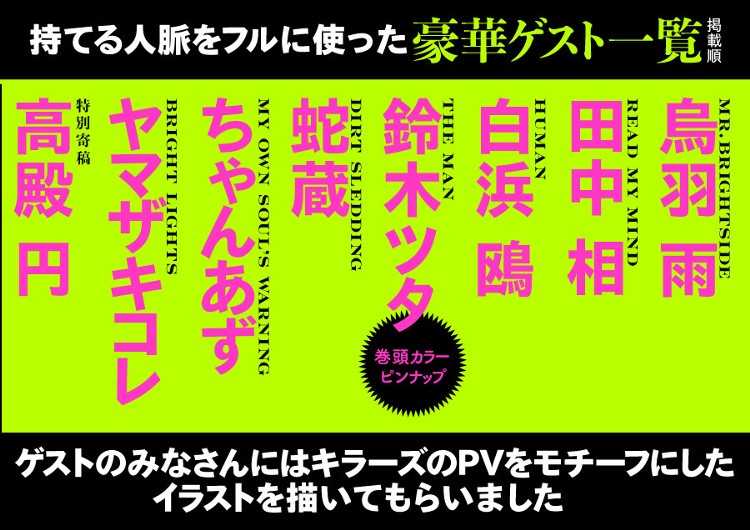 ゲストに、烏羽雨、田中相、白浜鴎、鈴木ツタ、蛇蔵、ちゃんあず、ヤマザキコレ、高殿円(敬称略)をお呼びしてます。