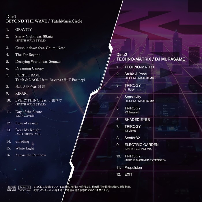 『BEYOND THE WAVE』には全16曲、『TECHNO-MATRIX』には全12曲を収録しており、2作品あわせて全28曲の大ボリュームとなっております。なお、カラオケトラックは含まず、すべて本編楽曲としてお楽しみいただける構成です。