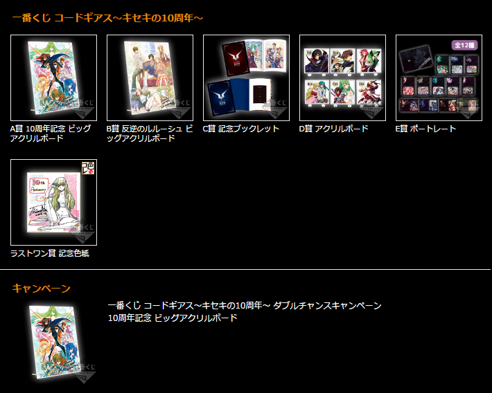 大プロジェクト「コードギアス~キセキの10周年~」の一番くじが登場!