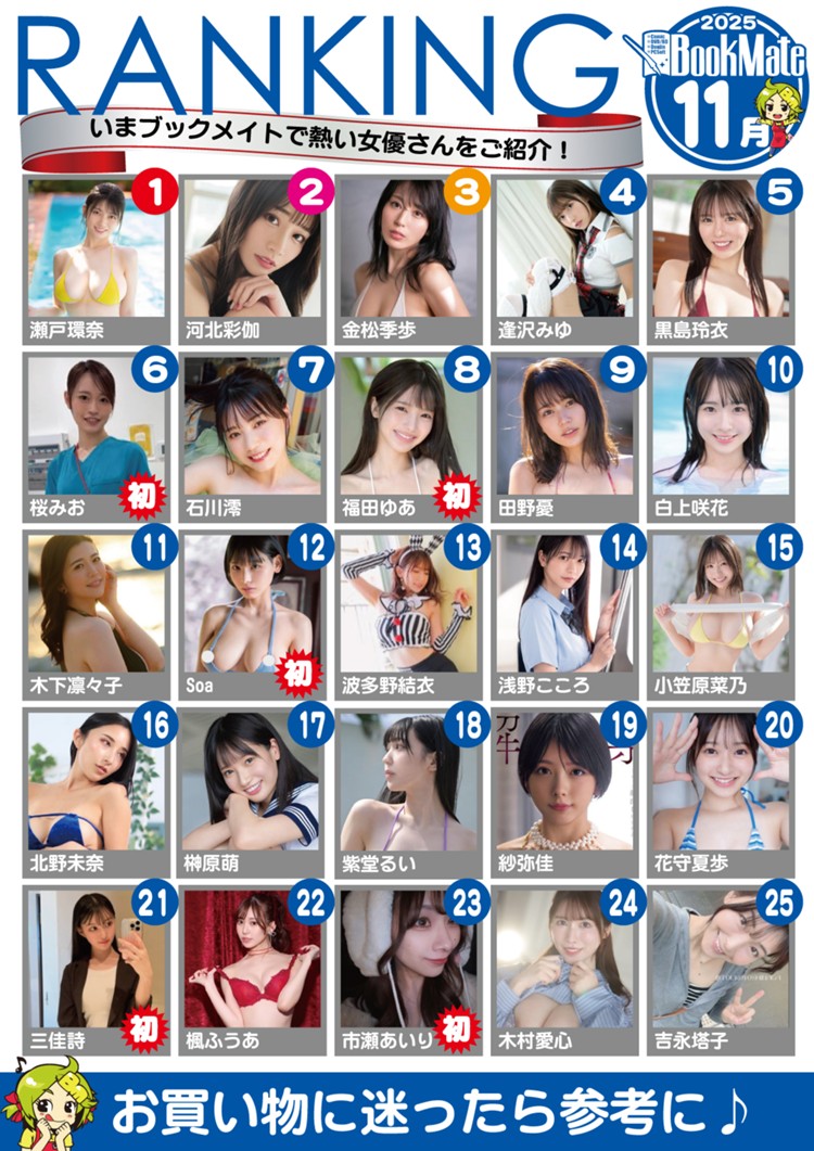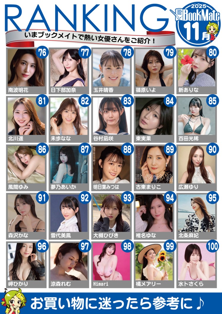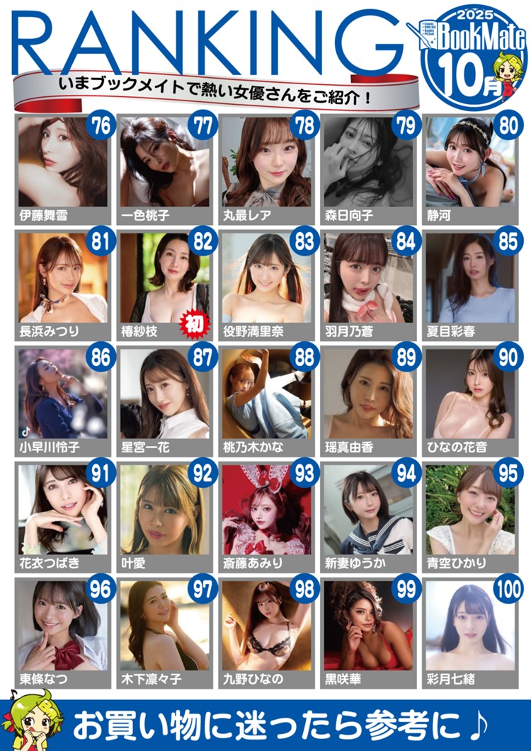 昨月ブックメイト全店でもっとも売れた女優さんのランキングTOP100です!