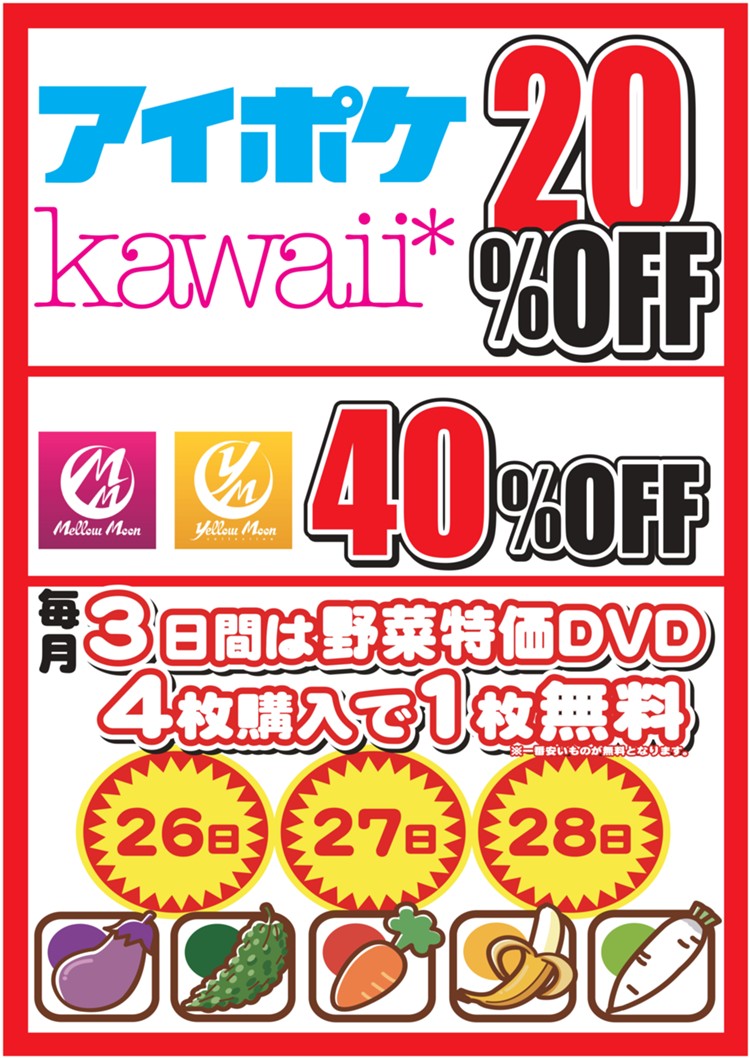 人気メーカーの20%OFF、40%OFFとお買い得な1カ月となっています。