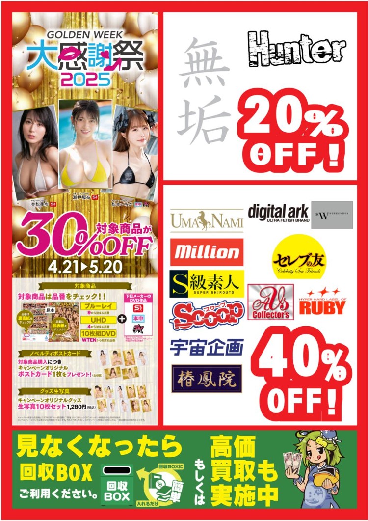 5/20まで、ゴールデンウィーク大感謝祭と致しまして。
