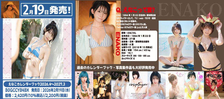 2月19日発売!!! 「えなこカレンダーブック2026.4~2027.3」