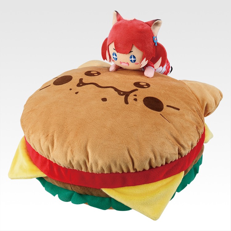 ハンバーガーに飛びつく姿が微笑ましい「かるび突撃★ハンバーガークッション」