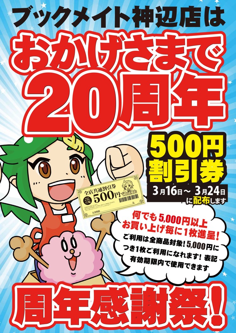 【神辺店】【ブックメイト神辺店】おかげさまで20周年!只今割引券を配布してます!!!【#ブックメイト】【#福山】【#神辺】 - ブックメイト