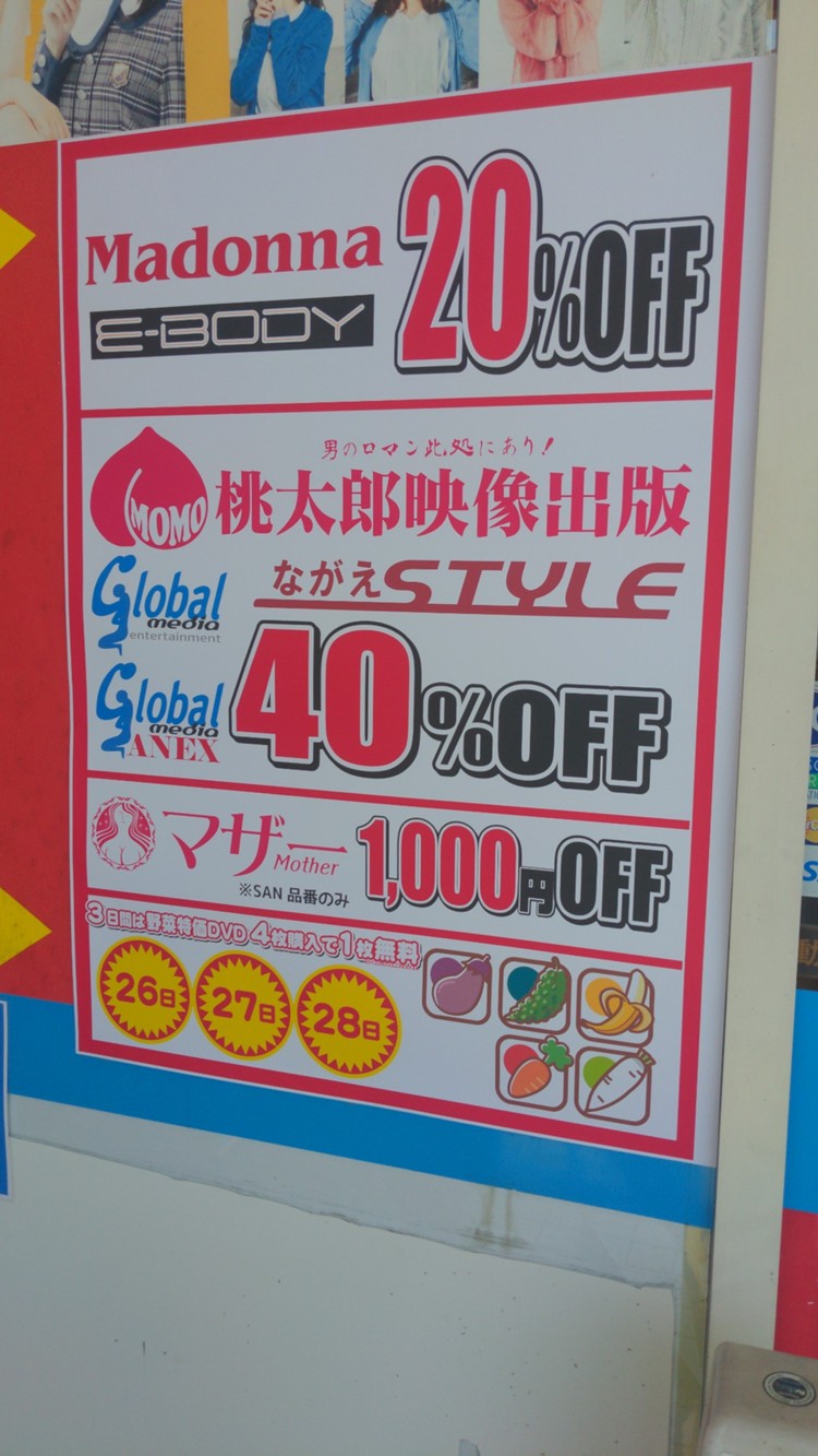 おすすめはマドンナ20%OFFキャンペーンとE-BODY20%OFFキャンペーンです。