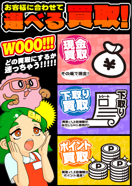 査定金額の1.3倍のポイントとしてメイトカードへ加算させて頂きます。