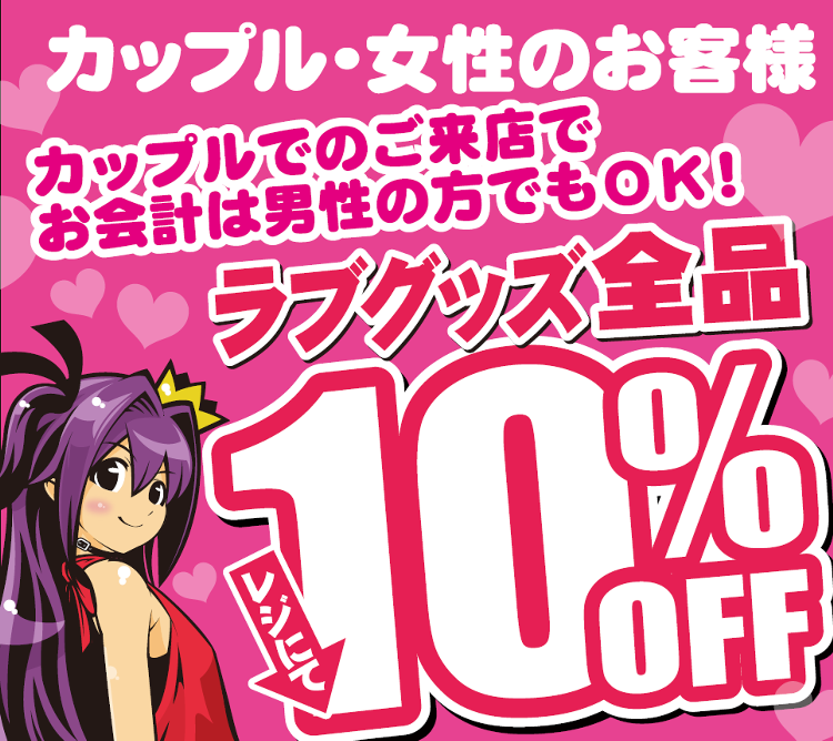 女性の方、またカップルでラブグッズをご購入されるとレジにて10%OFFです!