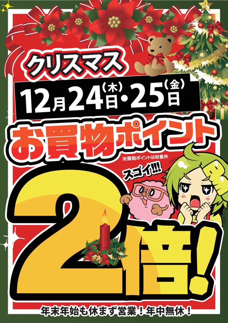 クリスマスポイント2倍デーと一緒にご利用いただければ、心も身体もフトコロも温まって、