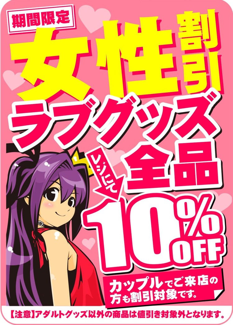 アダルトグッズ、ラブグッズ10%OFFキャンペーンも合わせて大好評実施中です(*´ω`*)