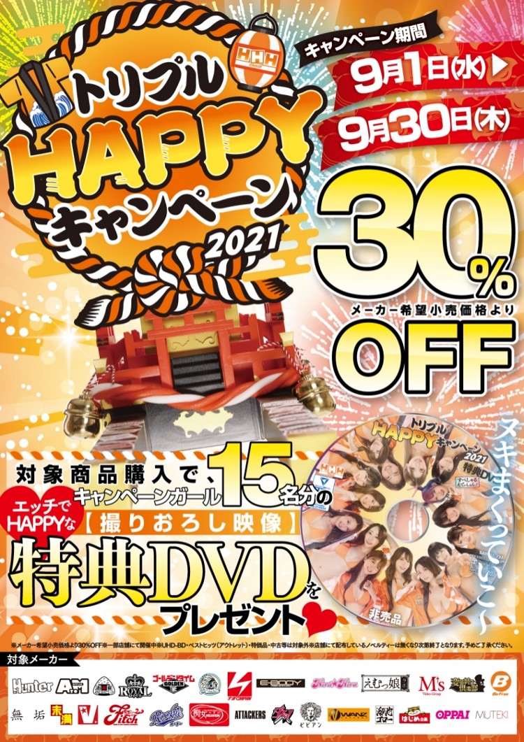 トリプルハッピーキャンペーン、27メーカー30%OFFは特にオススメです。