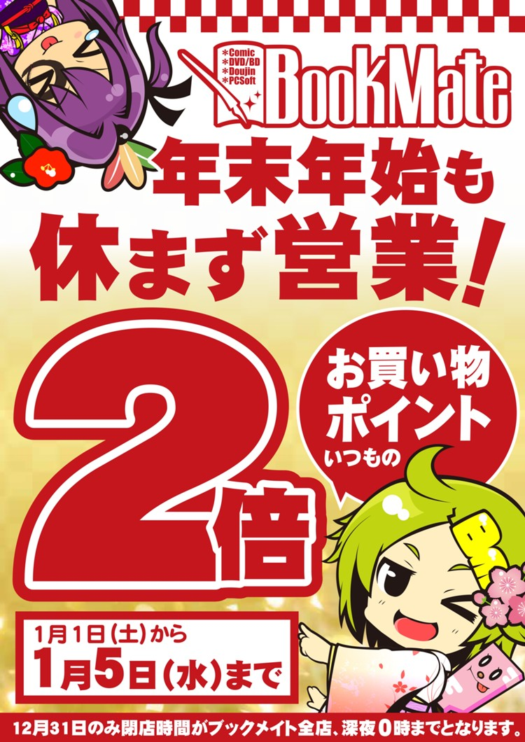 なんと!ブックメイトでは1/1~1/5までお正月、ポイント2倍デー