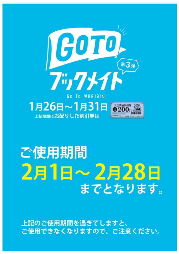 また、先月末GOTOブックメイト第3弾でお配りした200円割引券