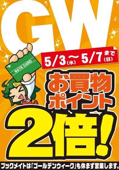 ブックメイト全店にてGWはポイント2倍デーになっております!