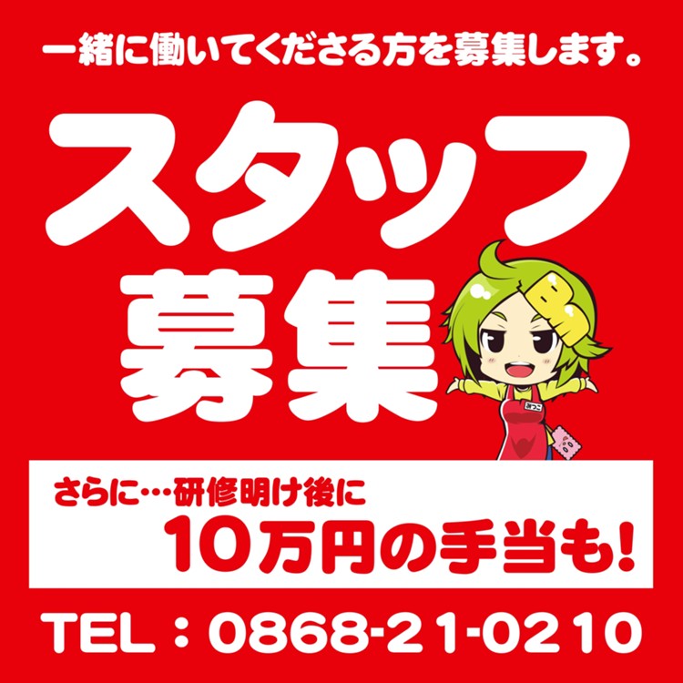 津山インター店では一緒に働いてくれるアルバイトスタッフさんを募集しております。