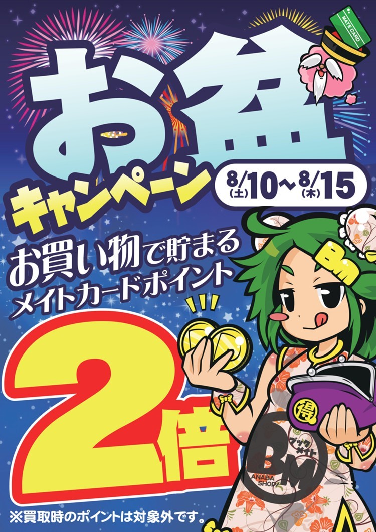 8/10~8/15までの期間は、お買い物で貯まるポイントが2倍です!