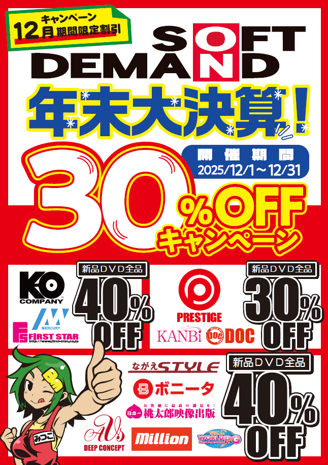大注目はソフトオンデマンドのDVDが30%OFF!!