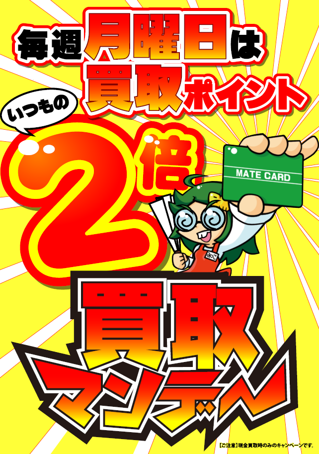 そして毎週月曜日は買取マンデーと致しまして、